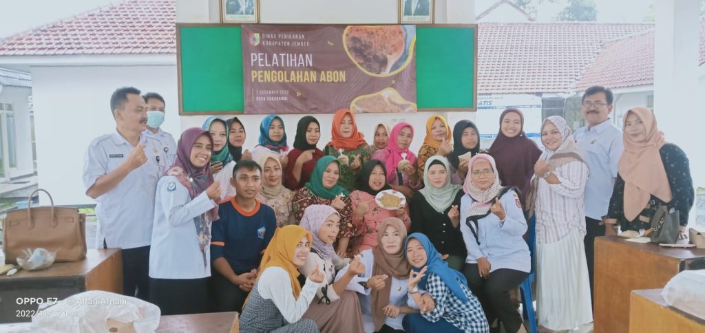 Jember (7/12) SMK Perikanan dan Kelautan Puger turut serta dalam kegiatan pelatihan pasca panen yang diadakan oleh Dinas Perikanan Kabupaten Jember. Kegiatan pelatihan pasca panen ini diadakan di aula Kecamatan Sukorambi, Kabupaten Jember selama 2 hari, yaitu mulai dari tanggal 6-7 Desember 2022. Diikuti oleh berbagai UMKM di Kabupaten Jember yang bergerak dibidang pengolahan hasil panen perikanan dan salah satunya adalah tim produksi Pengolahan Hasil Perikanan SMK Perikanan dan Kelautan Puger.